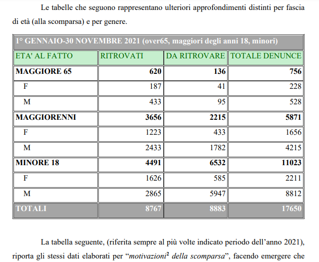 Sono circa 11 mila le denunce presentate nel 2021, in merito alle segnalazioni di persone scomparse :